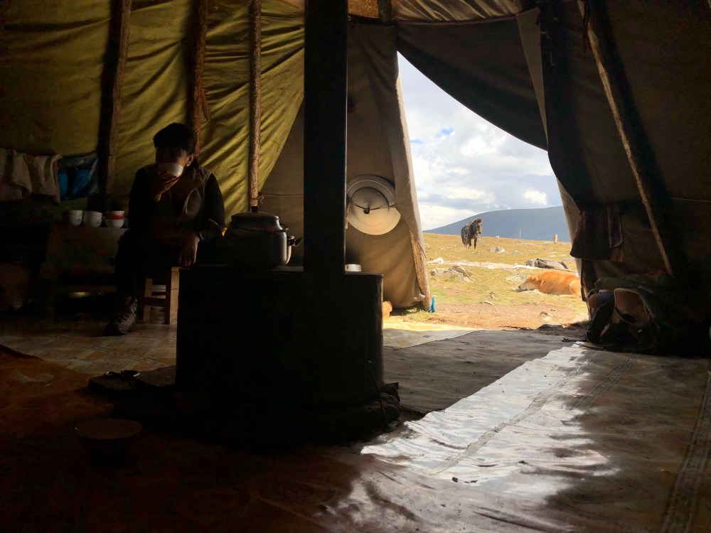 Dans ces tipis, on retrouve de deux à quatre lits simples sur lesquels sont déposés des couvertures qui font office de matelas. Tu m’imagines quelques jours à dormir là-dessus ? Moi qui rêvait déjà de dormir sur mon matelas deux semaines après être partie… Ces habitats, dans quelques jours, seront démontés afin que les nomades puissent se diriger vers leur campement d’automne… et ainsi de suite à chaque saison. Ils doivent démonter toutes leurs habitations et transporter bétail, effets personnels, matériel utilitaire (incluant foyer, nourriture, couvertures, etc.) à dos de cheval et renne pendant 2 à 4 jours.