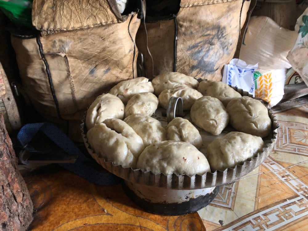 Les Doukhas nous ont accueillis à bras ouverts avec leur sourire. Il y a toujours du thé au lait de renne bien chaud prêt à boire, du pain et fromage fait à la main. On nous sert à manger de la viande de renne. Ce qui est très rare pour les nomades, car habituellement ils n’en mangent qu’une fois par an. Nous sommes très chanceux! C’est un vrai régal! Les gens sont si généreux cela m’émeut! Ben oui, j’ai pleuré tu me connais, les larmes me viennent facilement! Pas capable de contenir ma joie, ma douleur, mon extase, ma fierté d’avoir tout fait cela avec ma famille!